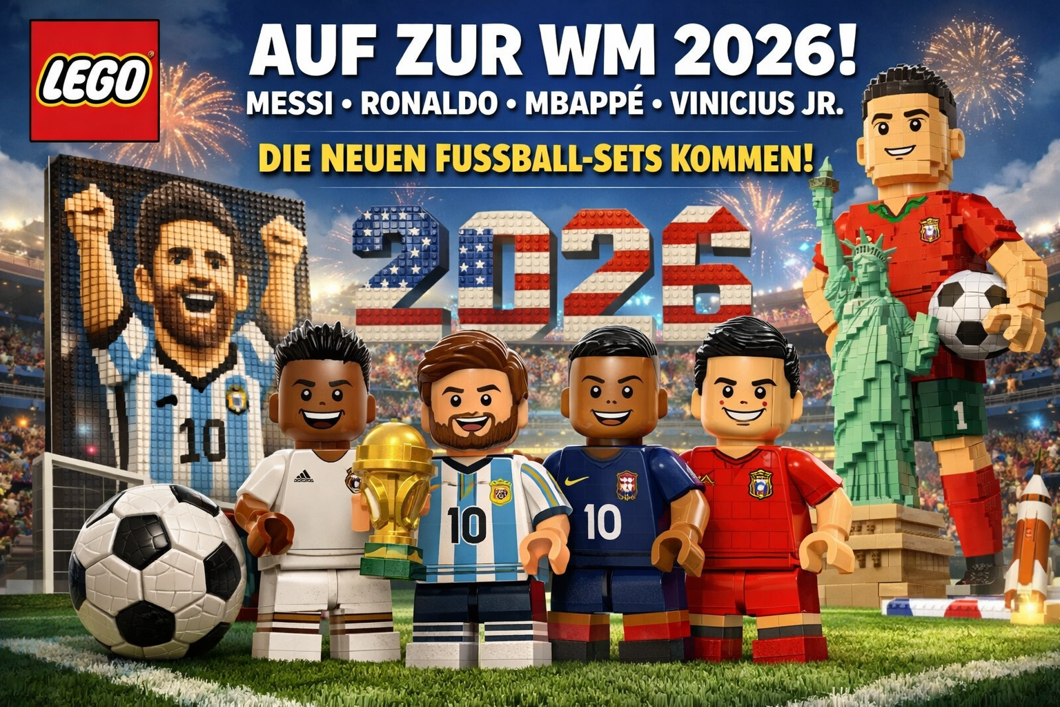 Für Fans bedeutet das: Die Stars der Fußballwelt ziehen nicht nur ins Stadion ein, sondern auch ins LEGO-Regal.
